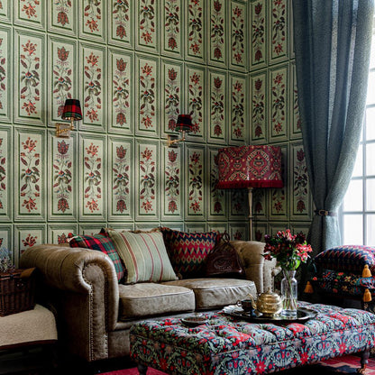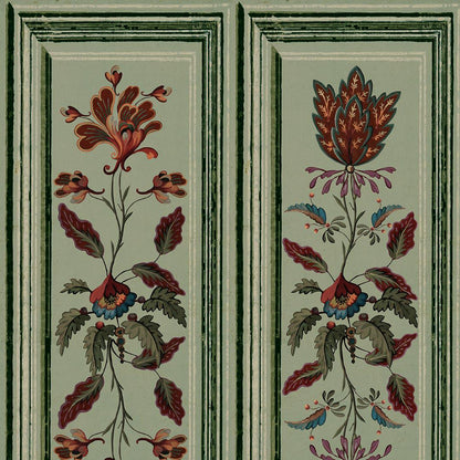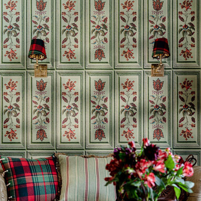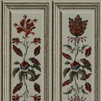 Step into a world of old-world charm with our Tyrolean Panel Wallpaper. This beautiful trompe l'oeil paper is designed to create the illusion of traditional Tyrolean panels, complete with stylised blooms and delicate leaves framed by a convincing panel-like border.