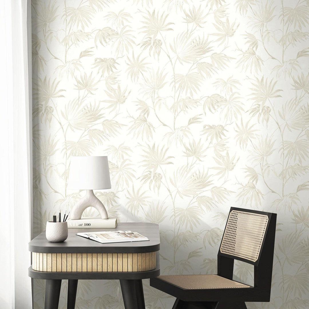 With its cream colours and intricate leaf pattern, this wallpaper adds a sense of calm to any space. It's the perfect way to bring a touch of the outdoors inside, without sacrificing style. The lush botanical feel of the palm leaf wallpaper design is complemented by a slight vintage quality, giving it a timeless and elegant charm.