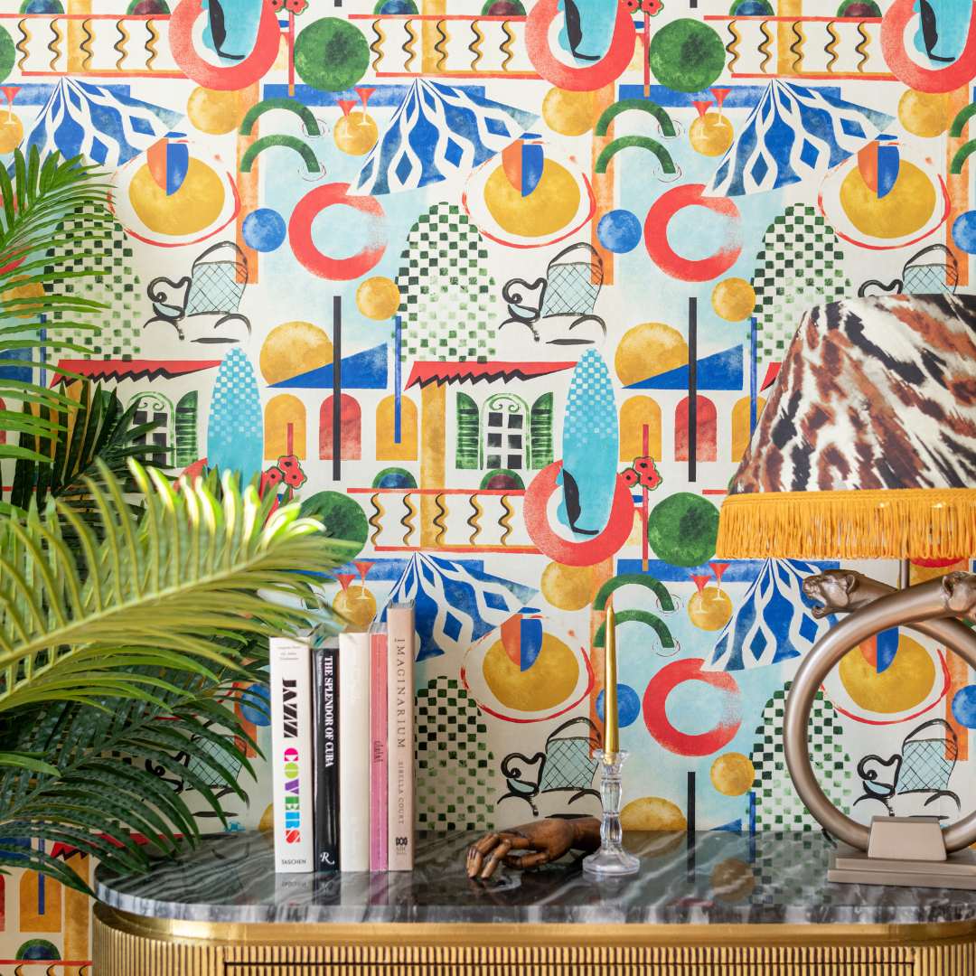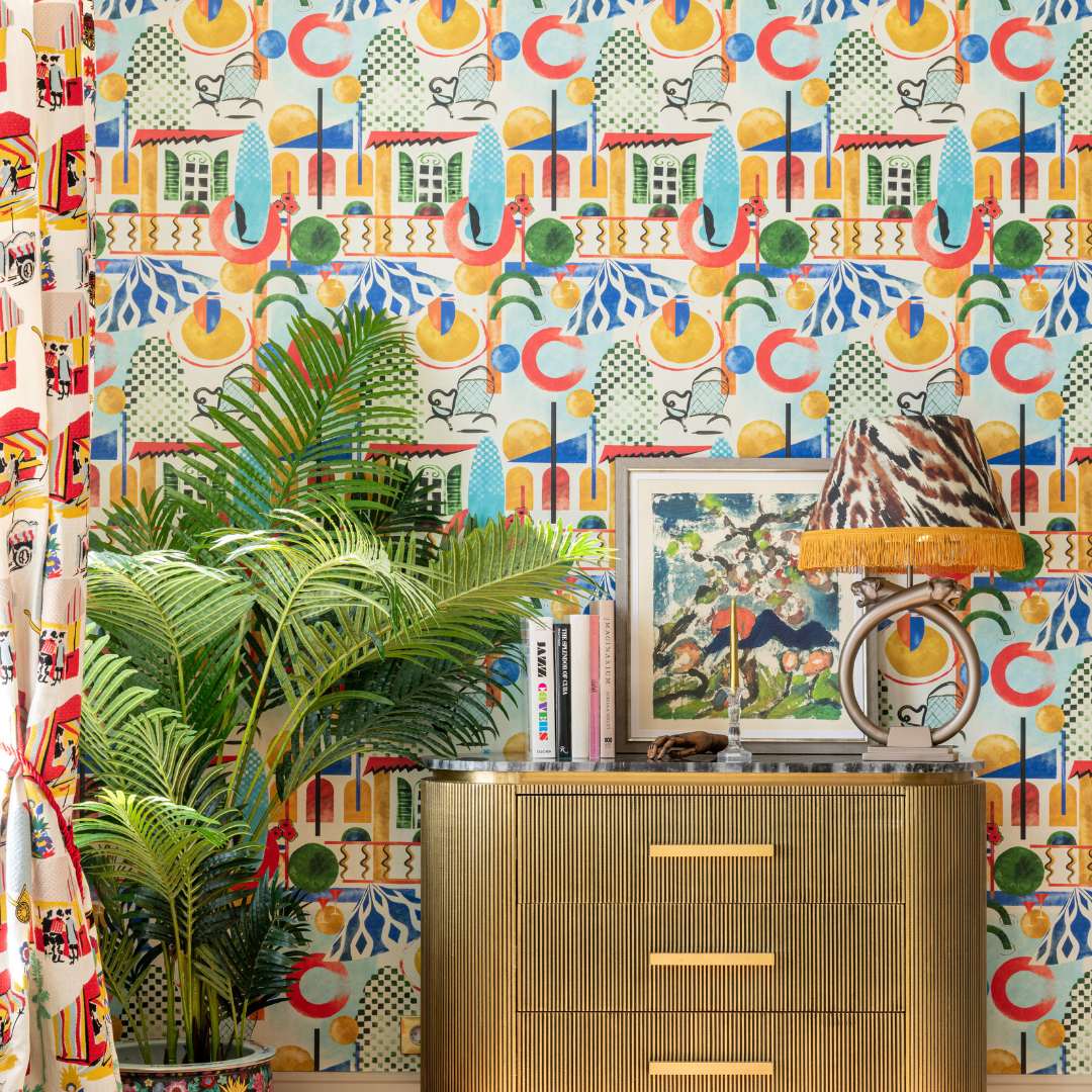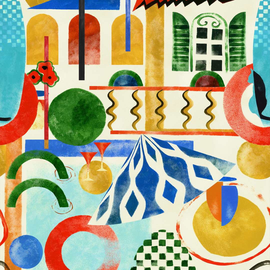 Introducing the Veranda Wallpaper by MINDTHEGAP, designed to transform any place into a sunlit escape. Imagine a warm Italian breeze flowing through open windows, revealing a serene landscape beyond. From the rustic tones of terracotta to the rich blues of the Mediterranean sky, every colour evokes a sense of joy, relaxation, and connection. Intricate geometric patterns and playful scenes - a glass of limoncello, a bowl of fresh figs - create moments of quiet indulgence, inviting you to linger. Perfect for designers seeking a modern aesthetic, this wallpaper tells a story of leisurely afternoons and cherished memories. Available in two colour ways.