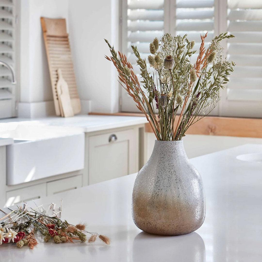 The Verre Frosted Gold Glass Vase is a luxurious home accessory that transcends the boundaries of art and functionality. Handcrafted with love and care, this gold vase is made from recycled, mouth-blown glass, making it not only a stunning addition to your home decor but also an eco-friendly choice.