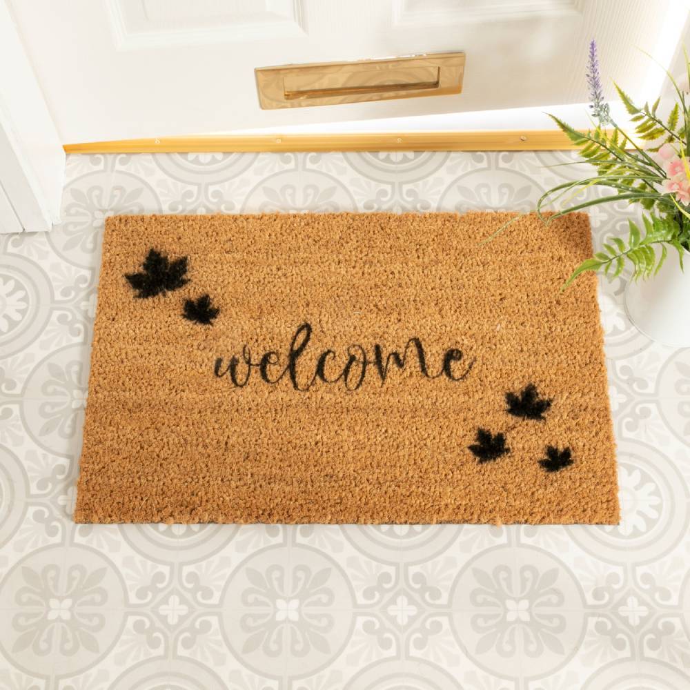 Create an inviting first impression of your home this Autumn with this lovely Welcome Leaf Doormat. This trendy doormat comes with a wonderful simple typography in black print onto sturdy coir.