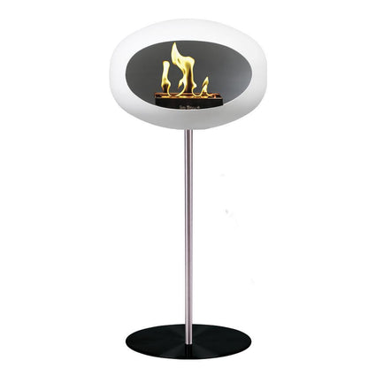 The trendy white ground steel bioethanol fireplace by Le Feu can be placed anywhere in your home or garden. This contemporary bioethanol portable fireplace features a white iron dome with steel leg and base and is designed to burn eco-friendly bioethanol fuel.