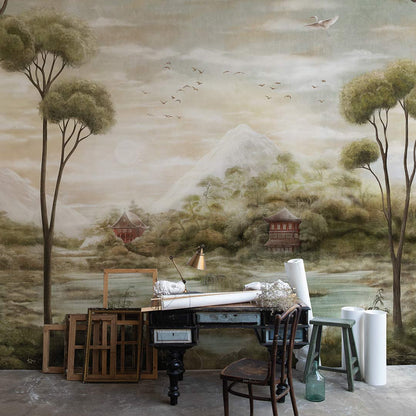 Welcome to the serene and majestic beauty of the Xi Hu Lake Mural from Coordonne. Experience a sense of tranquility and grace in your home with this stunning piece of artwork that captures the essence of Chinese culture and nature.
