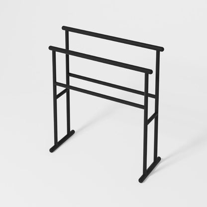 The stylish dark oak Yoku Freestanding Towel Rail is a functional and stylish addition to your bathroom.