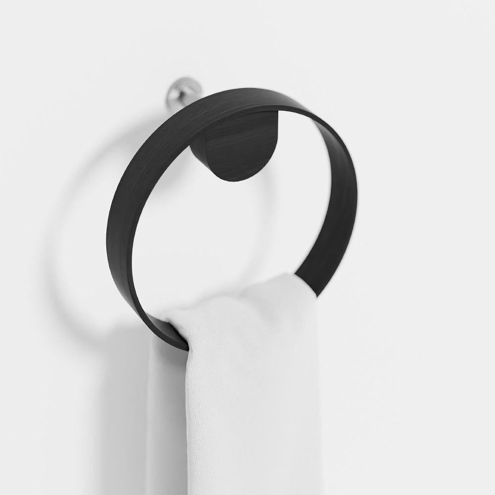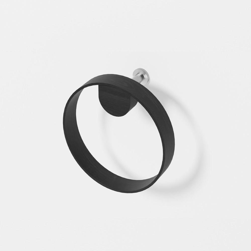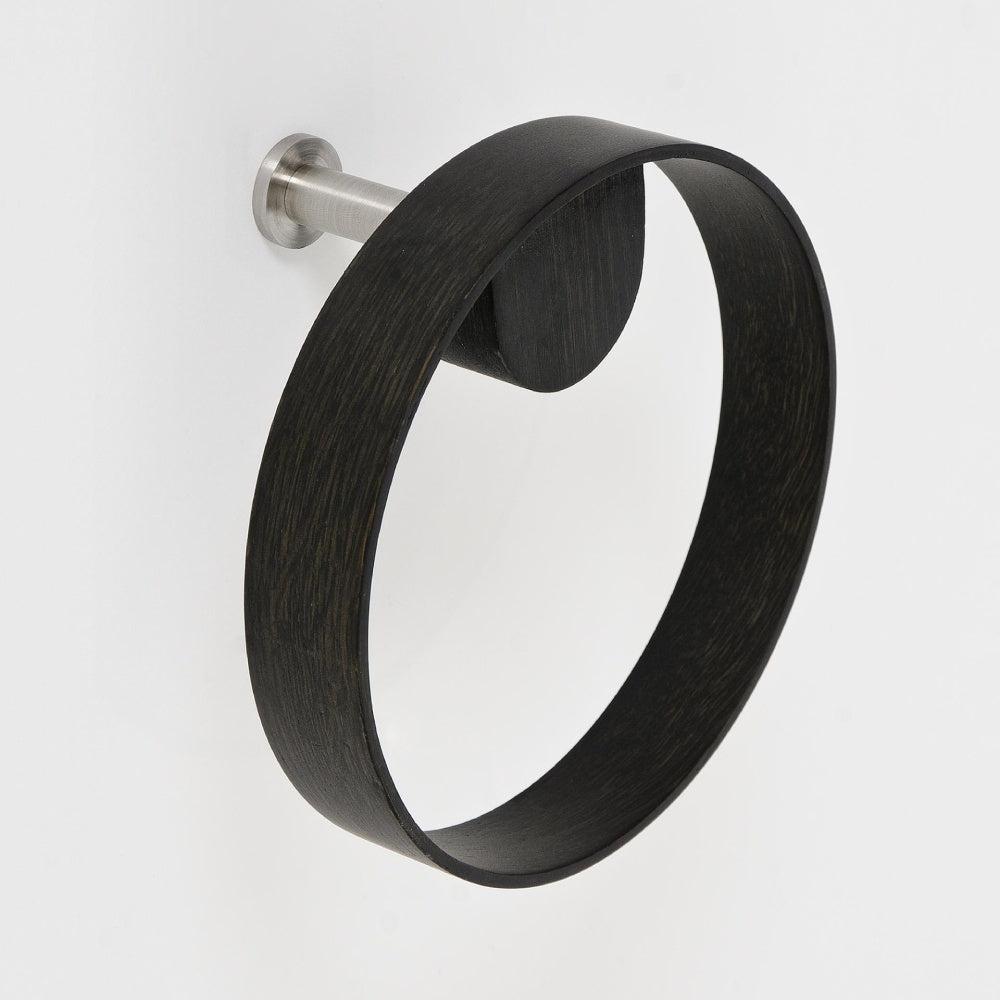 The stylish dark oak Yoku Ring Towel Holder presents the hand towel elegantly away from the wall and allows space for air to circulate freely so the towel can dry naturally. The continuous loop holds towels securely.