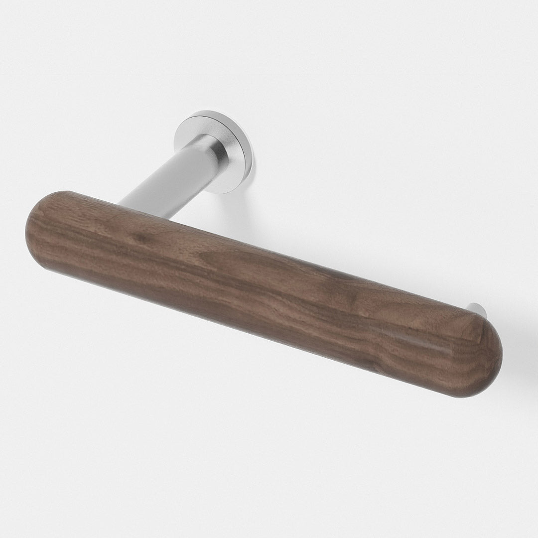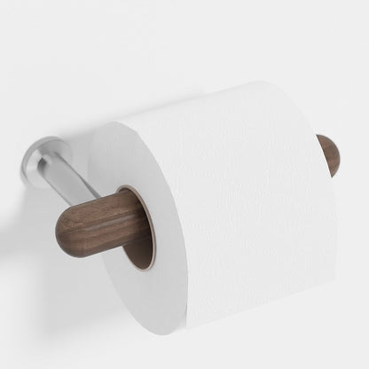Expertly crafted, the Yoku single toilet roll holder in walnut boasts a sleek and modern design that will elevate the look of any bathroom. The smooth, rounded wood parts of this wall hanging toilet roll holder perfectly complement the precision engineered, matt stainless steel fixings, creating a harmonious blend of form and function.