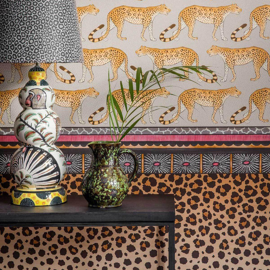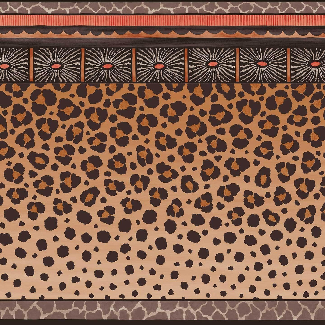 This striking leopard spot Zulu Border by Cole & Son forms part of the new Ardmore Collection. Inspired by the pedestal base of a ceramic base, Zulu Border has been created to be hung horizontally around the base of a wall but as a further option it can be hung vertically as a reverse match to create a dramatic and opulent wide graduated stripe.